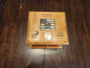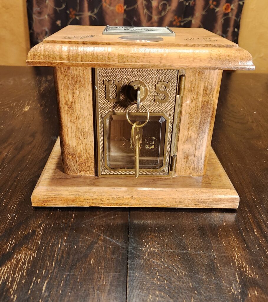 Year after the Civil war! Oldest door I have! #1 doors turned into #2 banks. 1866 silver half dollar or silver dollar imbedded into lid. Comes in light and dark stains.