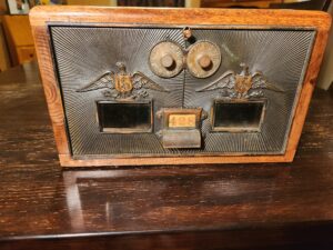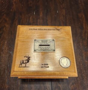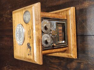 My 1902 Beveled glass doors came from Idaho falls, ID. These doors cleaned up real nice and are one of the last doors to feature the beveled glass. They come in small, medium, and a large Drawer. Come in light and dark stain and will have a 1902 silver half barber on lid! Only have 1 drawer!