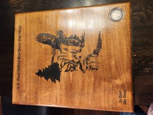 My 1902 Beveled glass doors came from Idaho falls, ID. These doors cleaned up real nice and are one of the last doors to feature the beveled glass. They come in small, medium, and a large Drawer. Come in light and dark stain and will have a 1902 silver half barber on lid! Only have 1 drawer!