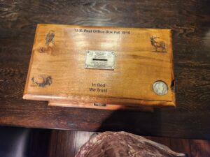 1910 Large door from Lothair Montana! Only comes in the large size. Comes with engraving and a 1910 half barber inset in lid!